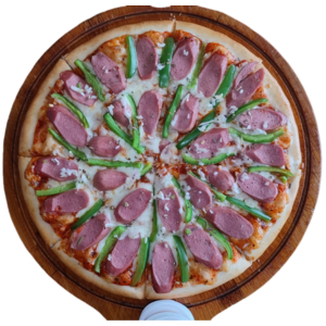 Special Dough, Pizza Sause, Blak Olive, Mozzarella & Cheddar Cheese, Sausage, Oregano, Onion, Capsicum.